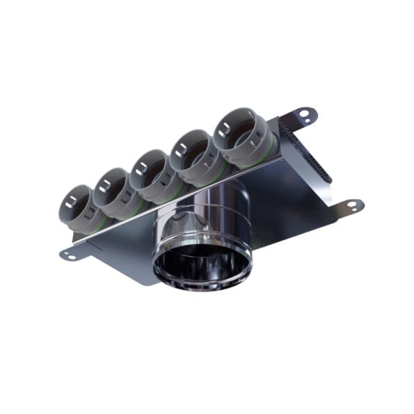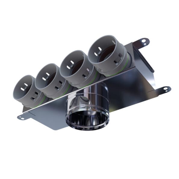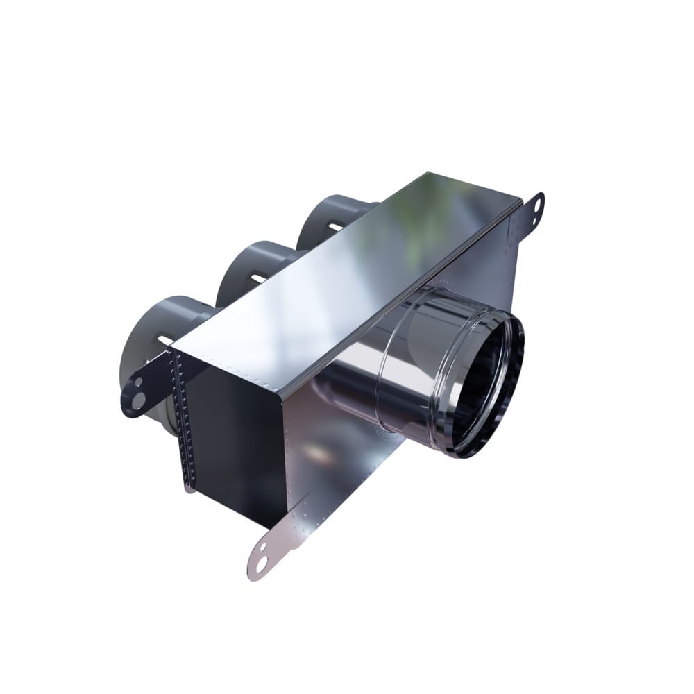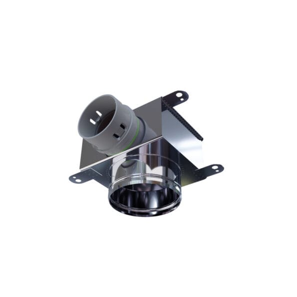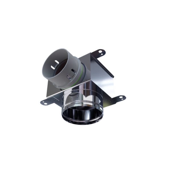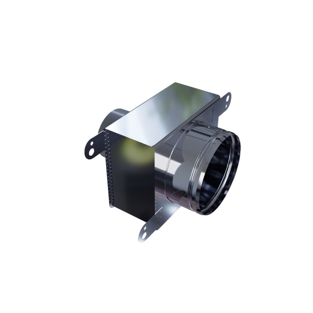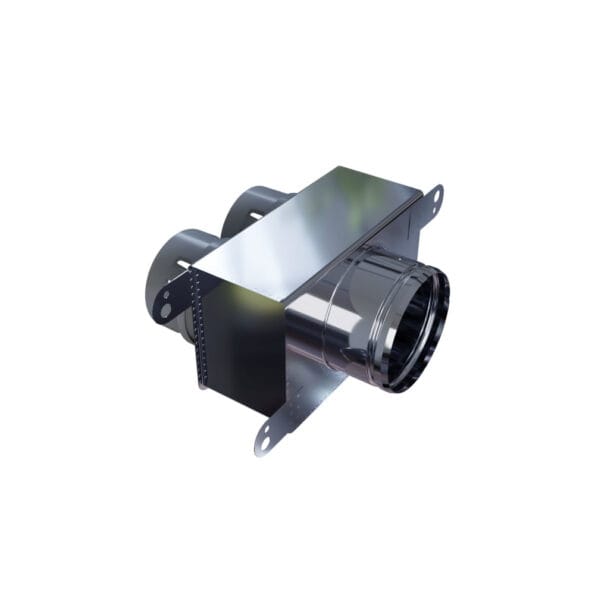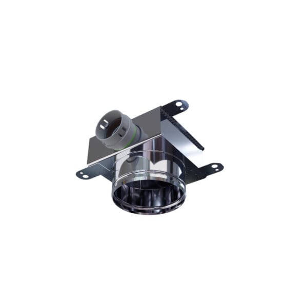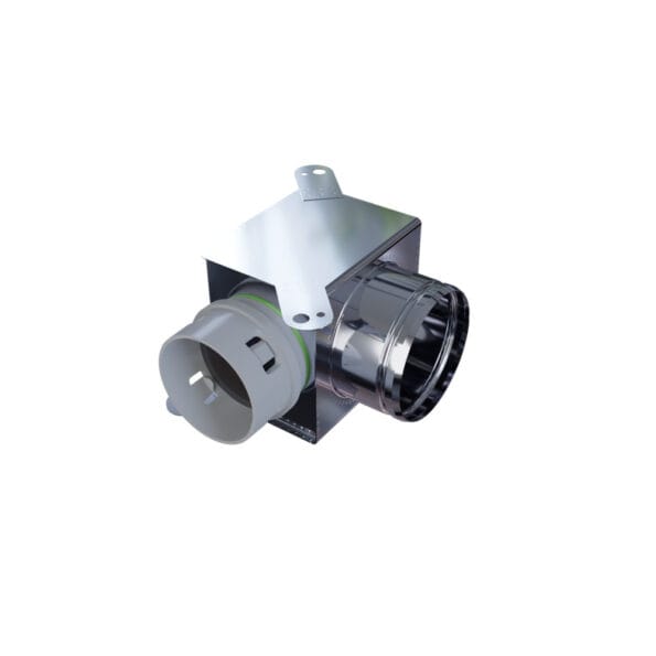 PEFLEX csatlakozódoboz, szelepfogadó rozsdamentes acélból Ø50, Ø75 és Ø90 mm NA100, NA125, NA160 átmérőjű szellőzőrendszer csatlakoztatásához .