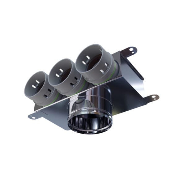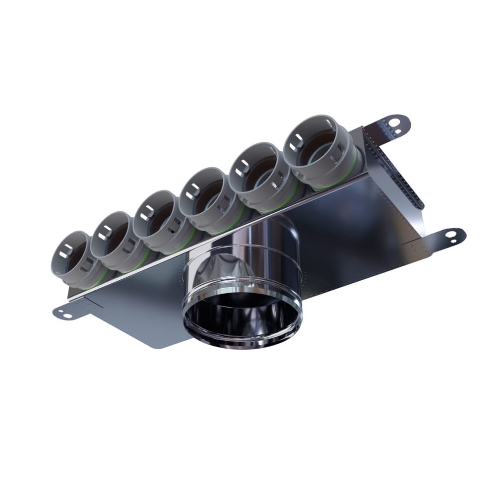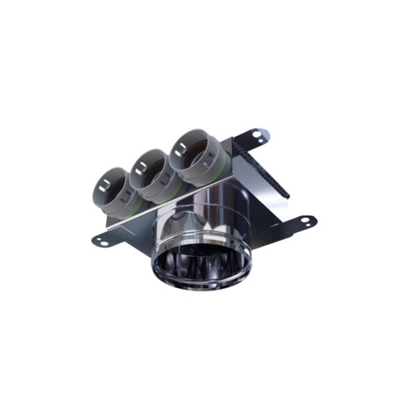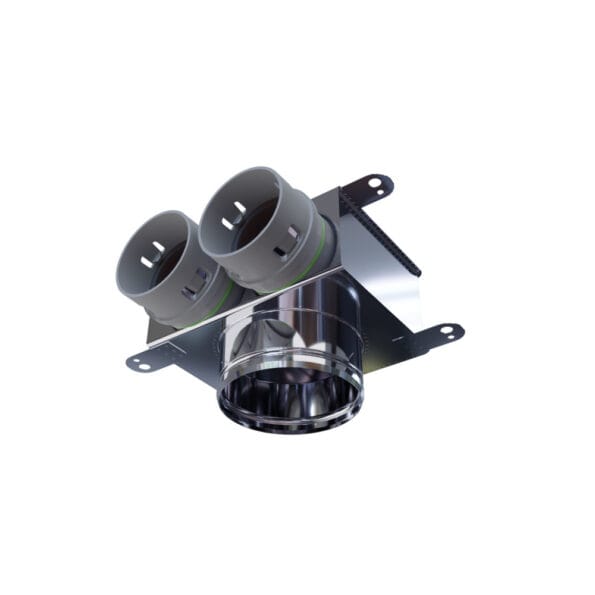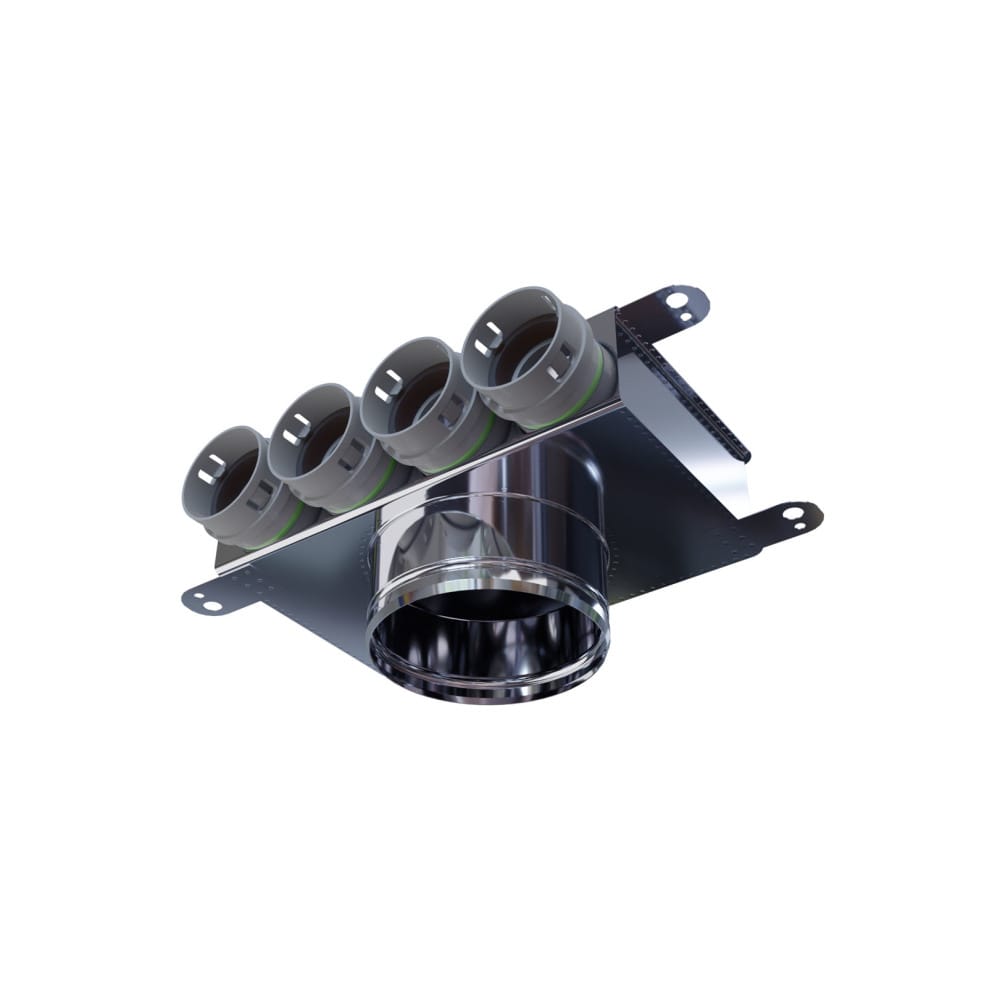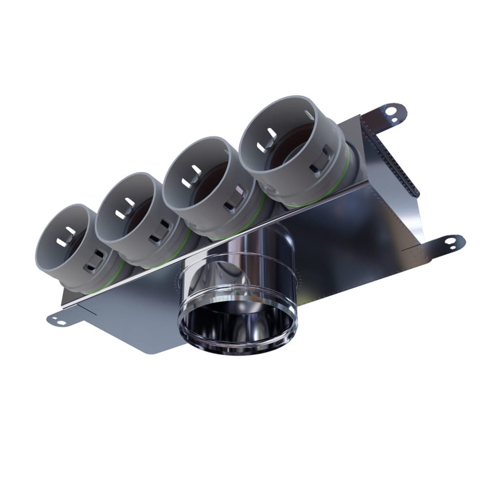PEFLEX inox csatlakozódobozok, rozsdamentes acélból, CLICK rendszerű csatlakozásokkal és beépített tömítésekkel PEFLEX csövekhez. Alkalmas Ø50, Ø75 és Ø90 mm-es szellőzőcsövekhez és Ø100, Ø125 és Ø160 mm-es diffúzorokhoz vagy hosszabbítókhoz. Három változatban kapható: szögletes, átmenő és irányított. Ezek a dobozok egytől több szellőzőcsatornáig csatlakoznak, a szobákba beépített befúvó-elszívó anemosztátokkal.